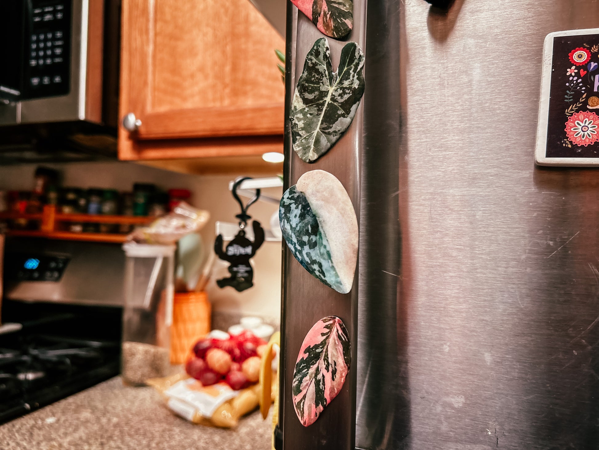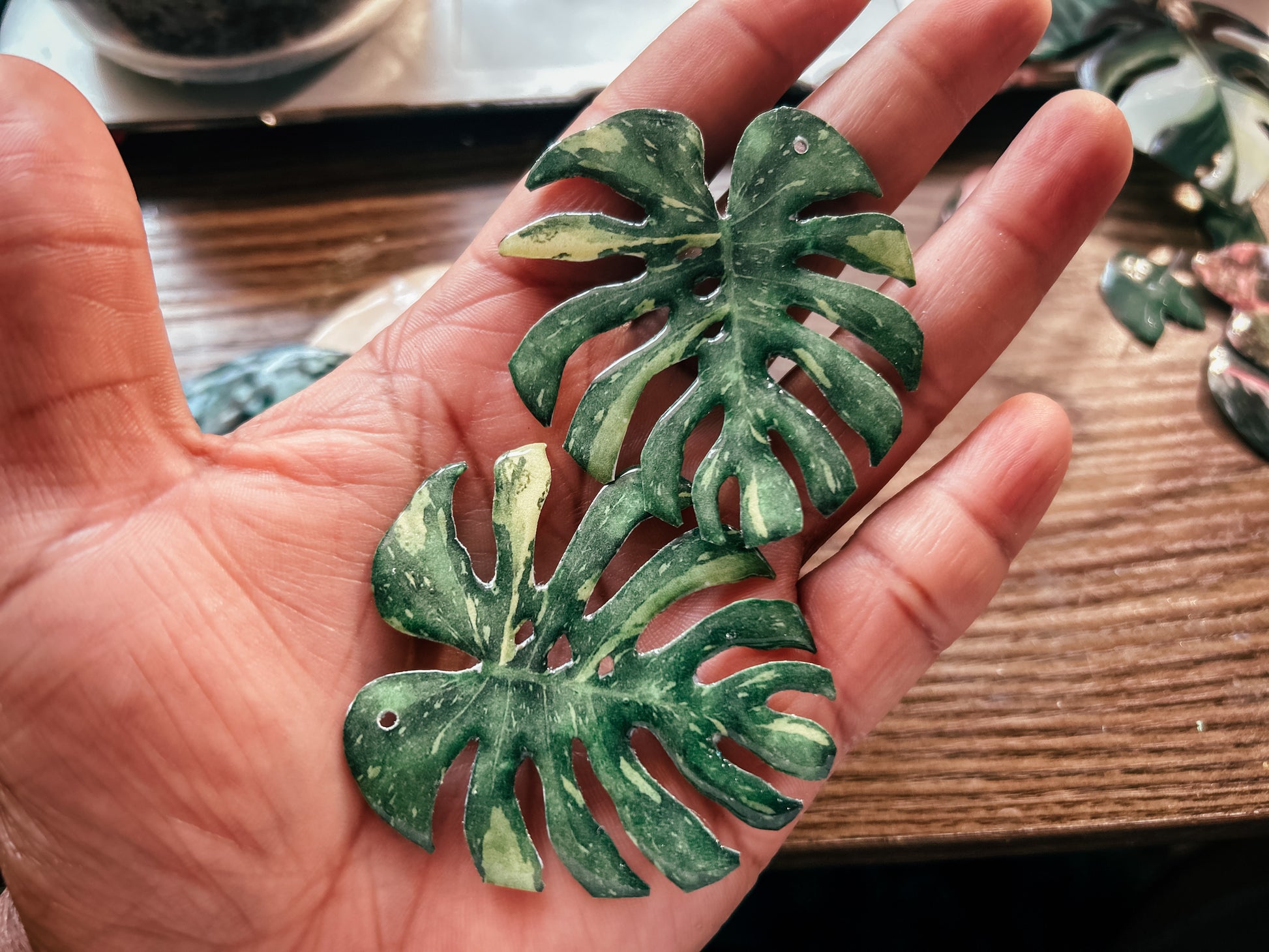- Magnets - In cases where the leaf is thinner than the magnet attachment itself (e.g. Queen Anthurium) then I will size up accordingly. Each magnet can hold up to 9.9 oz.